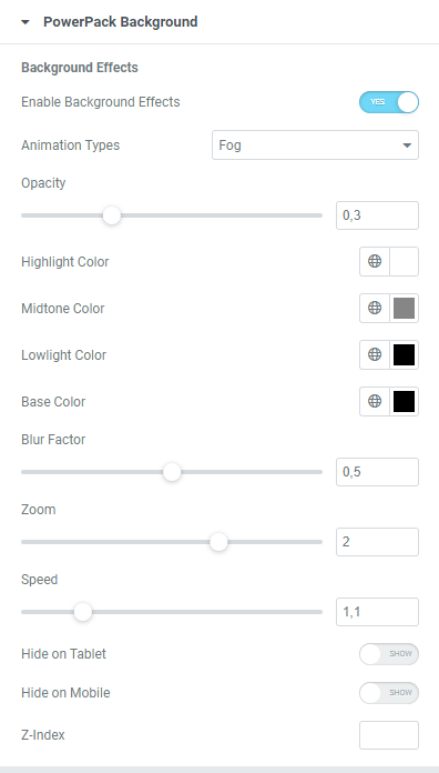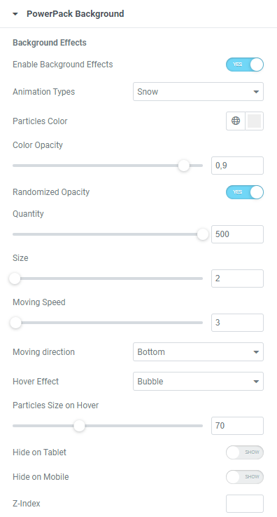 Powerpack Elements – Backgroundeffects aufrufen
