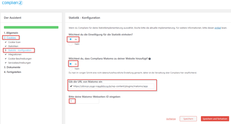 Das Plugin bringt einen Assistenten mit, der die Einrichtung erleichtert, indem er durch die Einstellungen führt. Führe diesen aus, um Matomo einzubinden.