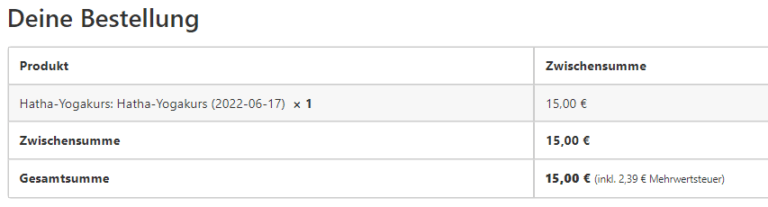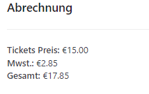 Als Ergebnis sieht man dann bei einer Veranstaltungs- bzw. Kursbuchung die korrekte Berechnung: