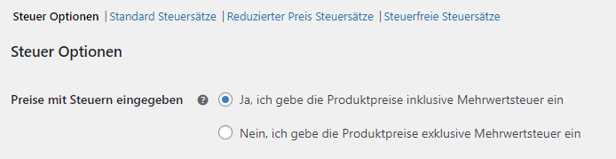 Die Berechnungseinstellungen lassen sich dann in Woocommerce hinterlegen. So lässt sich bspw. einstellen, ob die im MEC eingegebenen Preise die Mwst. beinhalten oder ob diese noch draufgeschlagen werden muss: